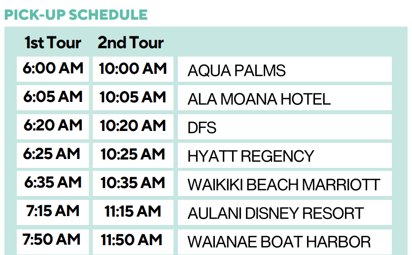 • Pickup opcional no hotel disponível como extra (Waikiki ou Ko Olina) - consultar horário